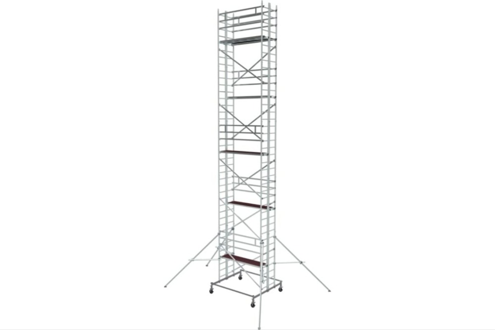 Вышка модульная алюминиевая MEGAL ВМА 900/11 используется при выполнении работ внутри резервуаров и емкостей. Габариты всех деталей не превышают 450мм, что позволяет пропустить их через технический лаз и провести сборку внутри резервуара. Вышка собирается из узких двухметровых и метровых вертикальных рам. Рамы фиксируются крепежными скобами и крепежом для стыкования рам. Безопасный подъем обеспечивается за счет использования нескользящих рифленых перекладин в рамах. Используются диагональные и горизонтальные связи (стяжки). Сборка производится без инструментов за счет наличия замкового крепления элементов. Верхний рабочий настил размером 2,0 х 0,9м с люком (составной). Промежуточные настилы размером 2,0 х 0,45м. Монтируется на усиленном основании из двойной траверсы с поворотными колесами, со стопорами. Используется надежная фиксация к стенкам резервуара за счет магнитных крепежей, которые не портят поверхность. Вышка имеет легкий вес за счет использования алюминиевых сплавов. Высокая грузоподъемность обеспечивается за счет использования труб и профилей со стенкой не менее 2,5мм. Компенсация неровной поверхности возможна за счет регулирования вышки по высоте с помощью винтовых домкратов.