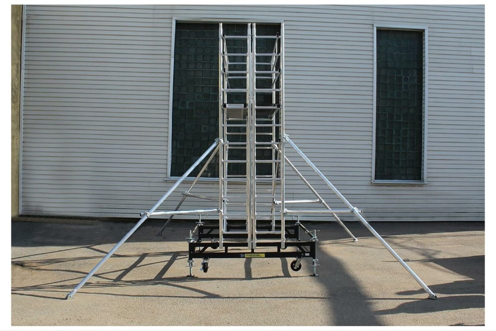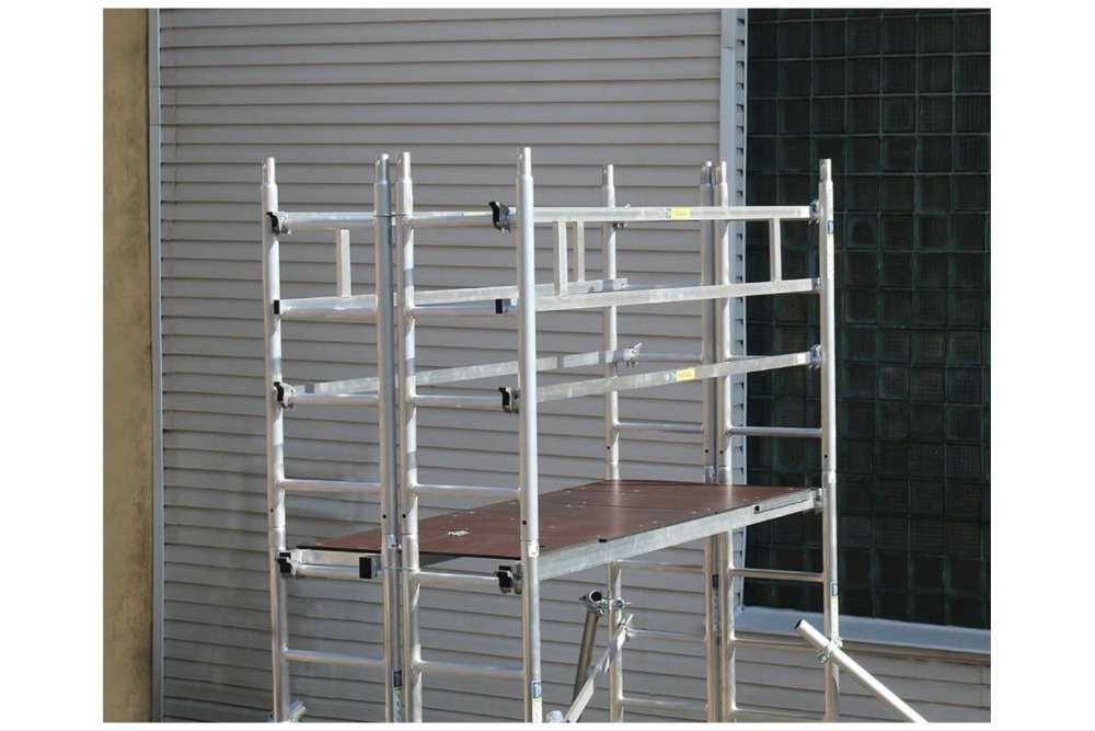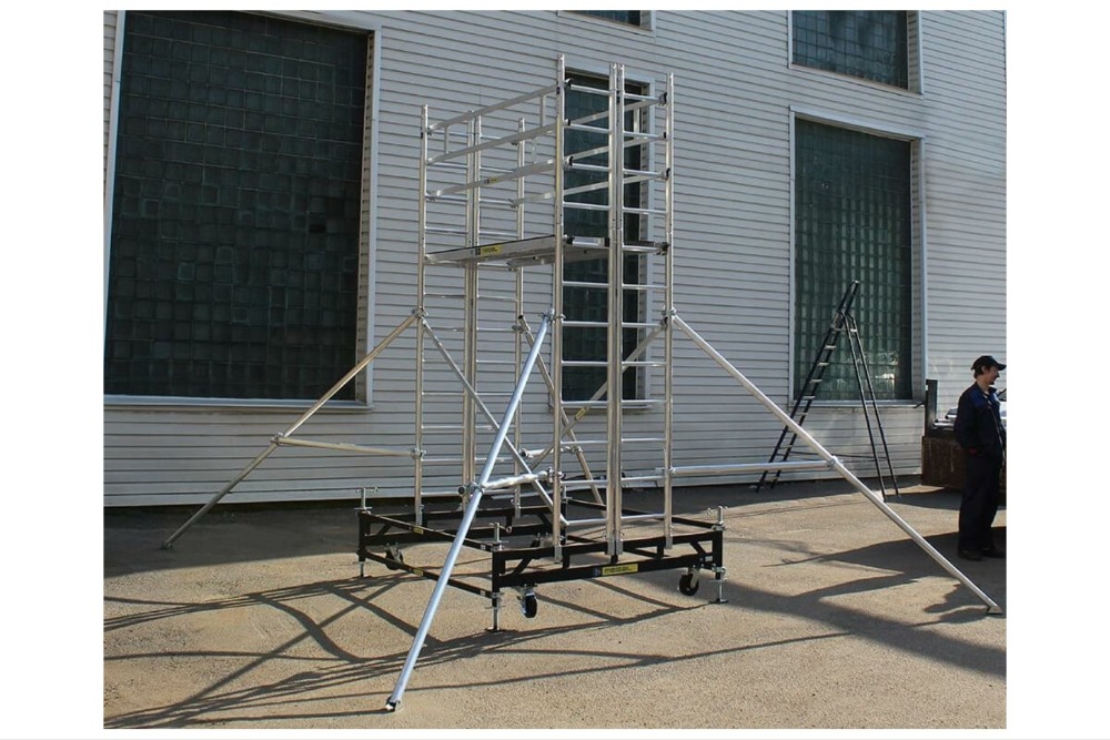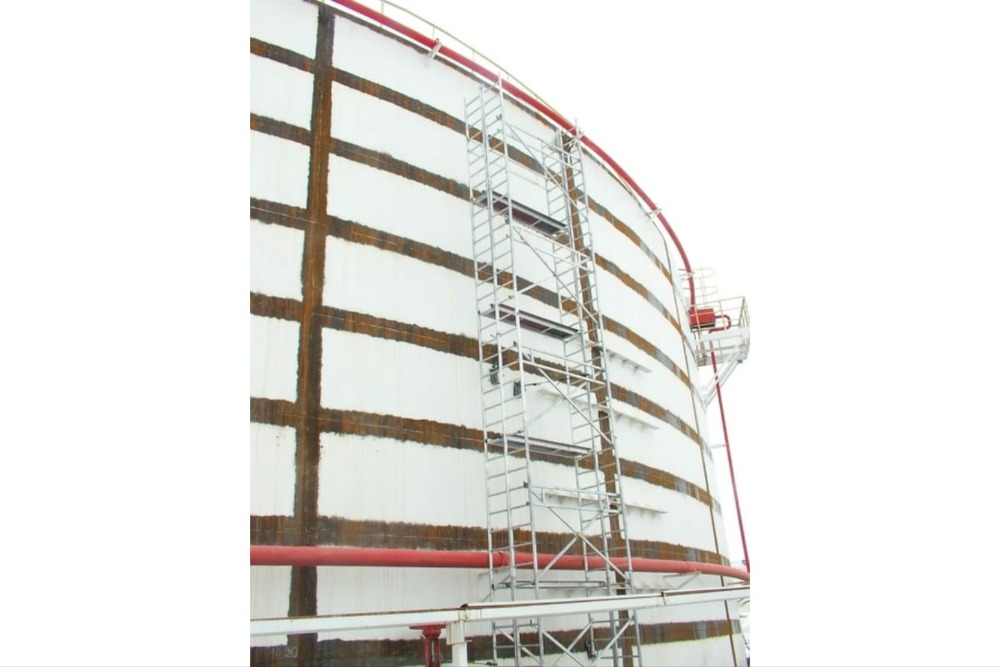 Вышка модульная алюминиевая MEGAL ВМА 900/15 используется при выполнении работ внутри резервуаров и емкостей. Габариты всех деталей не превышают 450мм, что позволяет пропустить их через технический лаз и провести сборку внутри резервуара. Вышка собирается из узких двухметровых и метровых вертикальных рам. Рамы фиксируются крепежными скобами и крепежом для стыкования рам. Безопасный подъем обеспечивается за счет использования нескользящих рифленых перекладин в рамах. Используются диагональные и горизонтальные связи (стяжки). Сборка производится без инструментов за счет наличия замкового крепления элементов. Верхний рабочий настил размером 2,0 х 0,9м с люком (составной). Промежуточные настилы размером 2,0 х 0,45м. Монтируется на усиленном основании из двойной траверсы с поворотными колесами, со стопорами. Используется надежная фиксация к стенкам резервуара за счет магнитных крепежей, которые не портят поверхность. Вышка имеет легкий вес за счет использования алюминиевых сплавов. Высокая грузоподъемность обеспечивается за счет использования труб и профилей со стенкой не менее 2,5мм. Компенсация неровной поверхности возможна за счет регулирования вышки по высоте с помощью винтовых домкратов.