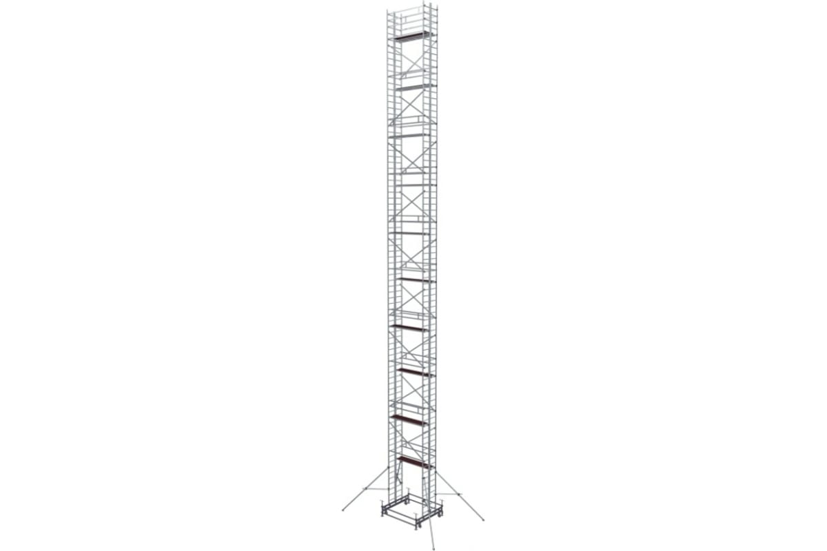 Вышка модульная алюминиевая MEGAL ВМА 900/22 используется при выполнении работ внутри резервуаров и емкостей. Габариты всех деталей не превышают 450мм, что позволяет пропустить их через технический лаз и провести сборку внутри резервуара. Вышка собирается из узких двухметровых и метровых вертикальных рам. Рамы фиксируются крепежными скобами и крепежом для стыкования рам. Безопасный подъем обеспечивается за счет использования нескользящих рифленых перекладин в рамах. Используются диагональные и горизонтальные связи (стяжки). Сборка производится без инструментов за счет наличия замкового крепления элементов. Верхний рабочий настил размером 2,0 х 0,9м с люком (составной). Промежуточные настилы размером 2,0 х 0,45м. Монтируется на усиленном основании из двойной траверсы с поворотными колесами, со стопорами. Используется надежная фиксация к стенкам резервуара за счет магнитных крепежей, которые не портят поверхность. Вышка имеет легкий вес за счет использования алюминиевых сплавов. Высокая грузоподъемность обеспечивается за счет использования труб и профилей со стенкой не менее 2,5мм. Компенсация неровной поверхности возможна за счет регулирования вышек по высоте с помощью винтовых домкратов.