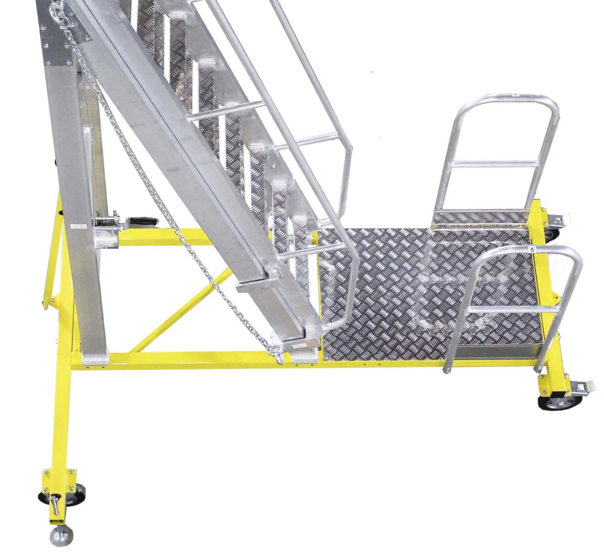 Вышка-стремянка алюминиевая для нефтяной промышленности MEGAL ВСА-5,0Н (3,6-5,0) предназначена для обслуживания автомобильных или железнодорожных цистерн на разных высотах. Лестничный марш вышки разбит на две секции, которые могут перемещаться относительно друг друга посредством