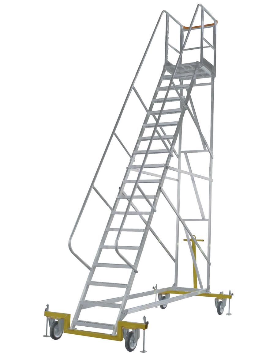 Вышка-стремянка алюминиевая MEGAL ВСА-4,5А предназначена для безопасной и удобной работы на складах, стройплощадках, в производственных цехах. За счет использования труб и профилей со стенкой не менее 2,5мм обеспечивается высокая грузоподъемность. Подъем осуществляется по широким ступеням из просечно-вытяжного листа, обеспечивающим надежное сцепление в холодное время года. Глубина ступеней 135 мм. Для безопасного подъема и спуска в конструкции предусмотрены перила по всей длине лестничного марша. Поворотные колеса обеспечивают высокую маневренность. Колесная база оснащена винтовыми опорами, обеспечивающими устойчивость изделия при работе на высоте.