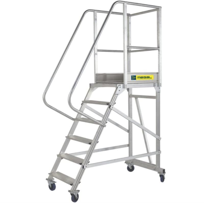 Вышка - стремянка разборная на колесах (150 кг) MEGAL ВС-1.5 предназначена для работ в торговых залах, на складах, вдоль стеллажей и других объектов, при проведении ремонтных, монтажных и иных работ на возвышении. Лестница имеет легкий вес за счет использования алюминиевых сплавов.