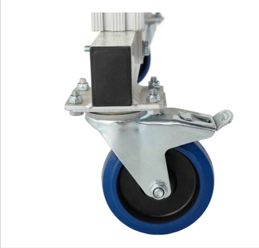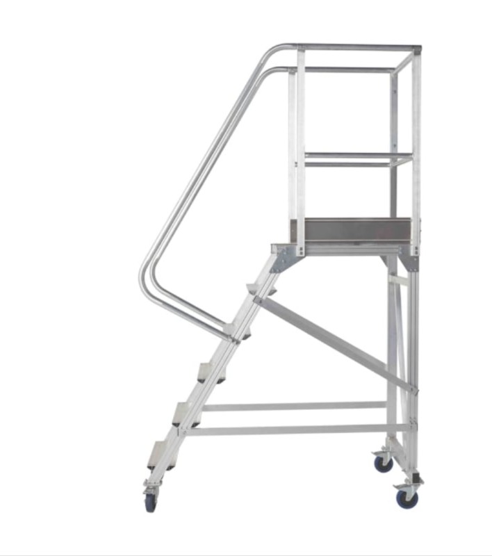Трехстороннее ограждение площадки со встроенной защитной планкой в районе колен, бортовое ограждение, перила по всей длине лестничного марша, ступени глубиной 160мм обеспечивают безопасный подъем, спуск и проведение работ. Площадка размером 800х680мм позволяет удобно расположиться рабочему с необходимым инструментом. Небольшая занимаемая площадь и прочные поворотные колеса со стопорами позволяют легко маневрировать в ограниченном пространстве. Легкий монтаж без специального инструмента сокращают время подготовки оборудования к работе.