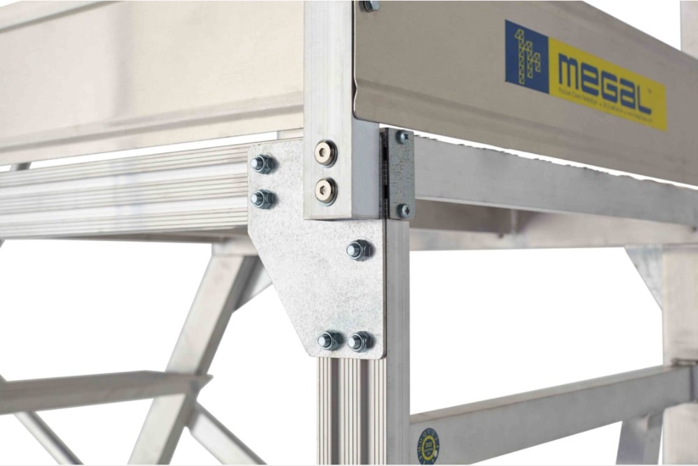 Вышка - стремянка разборная на колесах (150 кг) MEGAL ВС-3.0 предназначена для работ в торговых залах, на складах, вдоль стеллажей и других объектов, при проведении ремонтных, монтажных и иных работ на возвышении. Лестница имеет легкий вес за счет использования алюминиевых сплавов.