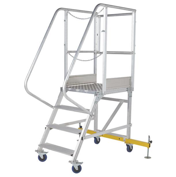 Вышка - стремянка разборная на колесах (150кг+150кг) MEGAL ВС2-0.8 предназначена для работ в торговых залах, на складах, вдоль стеллажей и других объектов, при проведении ремонтных, монтажных и иных работ на высоте. Представляет собой безопасную и легкую конструкцию из алюминиевых профилей высокой прочности. Имеет безопасные противоскользящие ступени из специального рифленого профиля. Площадка размером 800х680мм позволяет удобно расположиться рабочему с необходимым инструментом. Трехстороннее ограждение площадки со встроенной защитной планкой в районе колен, бортовое ограждение, перила по всей длине лестничного марша, ступени глубиной 160мм обеспечивают безопасный подъем, спуск и проведение работ, что подтверждает полное соответствие требованиям по ГОСТ. Все соединительные узлы и элементы полностью безопасны, обработаны и одобрены службой контроля качества. Простая и быстрая сборка лестницы без специального инструмента и поставка в виде предварительно собранных узлов сокращают время подготовки оборудования MEGAL к работе. Максимальный срок службы достигнут благодаря коррозионностойким свойствам алюминиевых сплавов. Небольшая занимаемая площадь и прочные поворотные колеса со стопорами позволяют легко маневрировать в ограниченном пространстве.