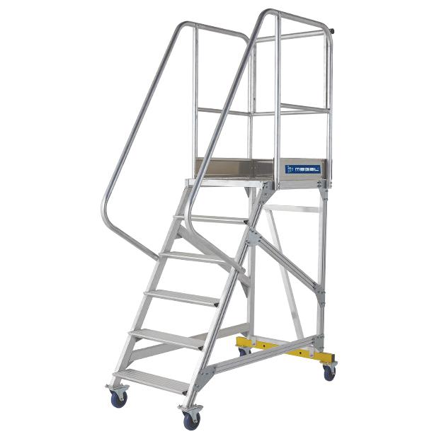 Вышка - стремянка разборная на колесах (300кг+150кг) MEGAL ВС3-3.0 предназначена для работ в торговых залах, на складах, вдоль стеллажей и других объектов, при проведении ремонтных, монтажных и иных работ на высоте. Представляет собой безопасную и легкую конструкцию из алюминиевых профилей высокой прочности. Имеет безопасные противоскользящие ступени из специального рифленого профиля. Площадка размером 800х680мм позволяет удобно расположиться рабочему с необходимым инструментом. Трехстороннее ограждение площадки со встроенной защитной планкой в районе колен, бортовое ограждение, перила по всей длине лестничного марша, ступени глубиной 160мм обеспечивают безопасный подъем, спуск и проведение работ, что подтверждает полное соответствие требованиям по ГОСТ. Все соединительные узлы и элементы полностью безопасны, обработаны и одобрены службой контроля качества. Простая и быстрая сборка лестницы без специального инструмента и поставка в виде предварительно собранных узлов сокращают время подготовки оборудования MEGAL к работе. Максимальный срок службы достигнут благодаря коррозионностойким свойствам алюминиевых сплавов. Небольшая занимаемая площадь и прочные поворотные колеса со стопорами позволяют легко маневрировать в ограниченном пространстве.
