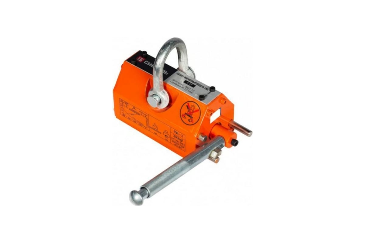 Для работы магнитного захвата не требуется электричество. При правильной эксплуатации и хранении размагничивание устройства не происходит. Для присоединения грузозахвата к подъемному механизму в верхней части имеется серьга.