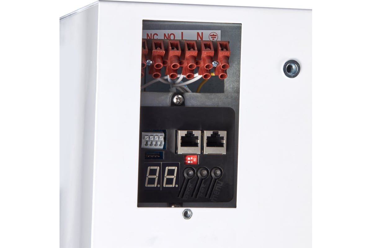 Встроенная плата управления позволяет подключать завесы к системе диспетчеризации по протоколу MODBUS при помощи низковольтного кабеля с разъемом RJ-45.