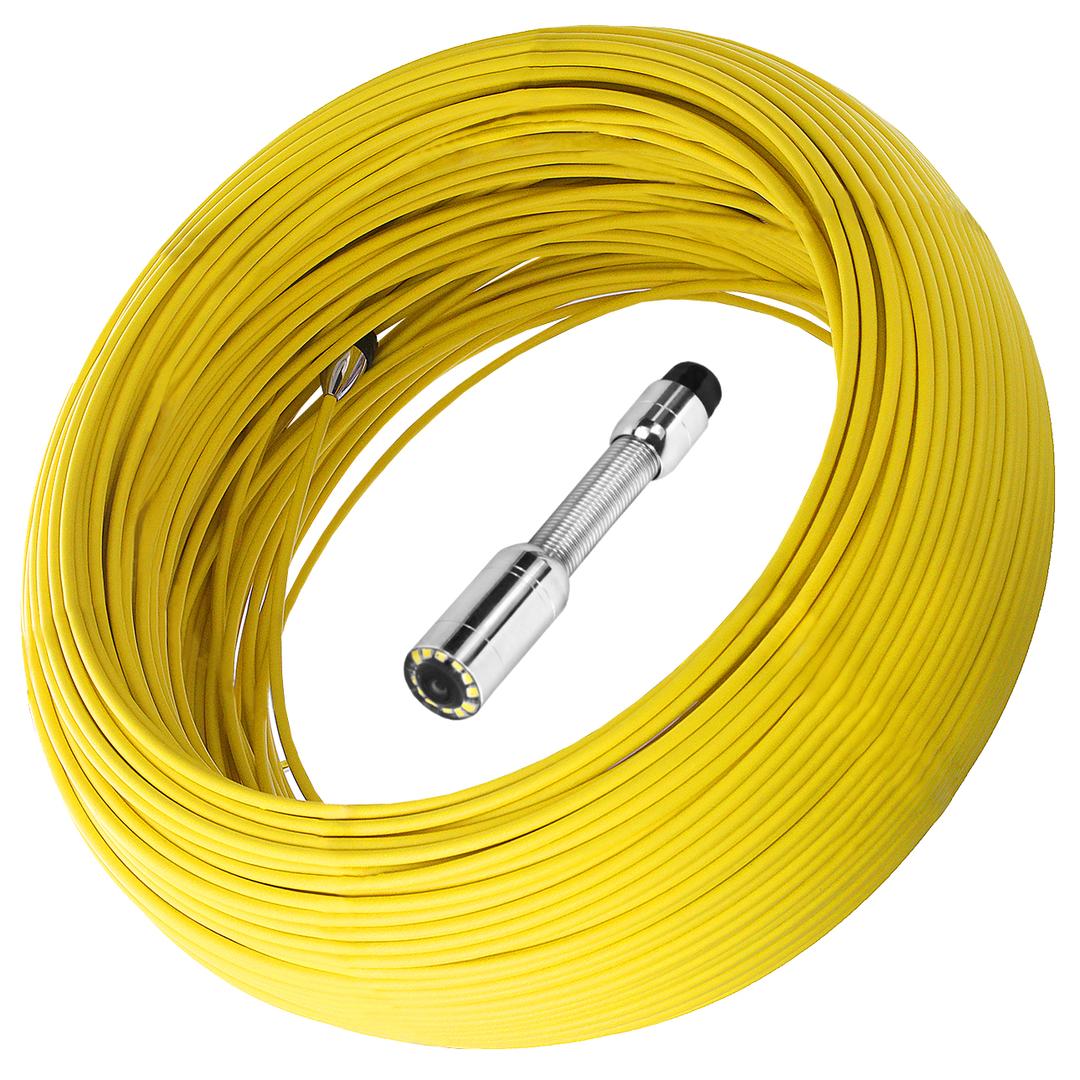 Зонд видеоскопа МЕГЕОН 33800 предназначен для визуального осмотра и проверки труднодоступных мест, скрытых полостей, канализации, вентиляционных шахт и других объектов без повреждения их. Зонд представляет собой масло-бензостойкий проводник из жёсткого композитного материала с нанесённой на оболочку разметкой. Один конец зонда соединяется с приборами вывода изображения, а на другой конец устанавливается мини-видеокамера на гибкой пружинной стойке. Камера защищена от воздействия пыли и влаги по классу IP67. Компактные размеры позволяют использовать её в трубах малого диаметра от 23 мм. Оснащённость камеры яркой светодиодной подсветкой даёт возможность выводить цветное изображение на экран монитора независимо от освещённости. Для удобства переноски и хранения зонд смотан в бухту ярко-жёлтого цвета.