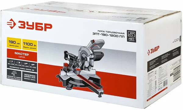 Торцовочная пила ЗУБР 190 ЗПТ-190-1200 ПЛ используется для быстрого пиления древесины. Благодаря подвижной голове можно производить резку габаритных заготовок.