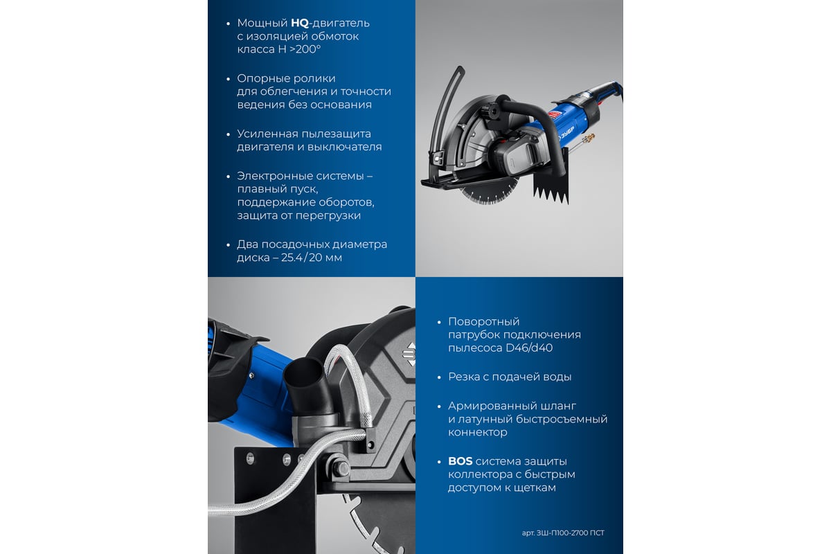Инструмент для наиболее трудных и глубоких (до 100 мм) резов любых материалов - бетона, асфальта, бордюров, кирпича. Высокая мощность двигателя в сочетании с передаточным отношением редуктора дает большой крутящий момент на валу, что позволяет резать быстро и эффективно. Эффективный пылеотвод или работа с подачей воды защищают от пыли. Съемное основание для горизонтальных продольных резов.