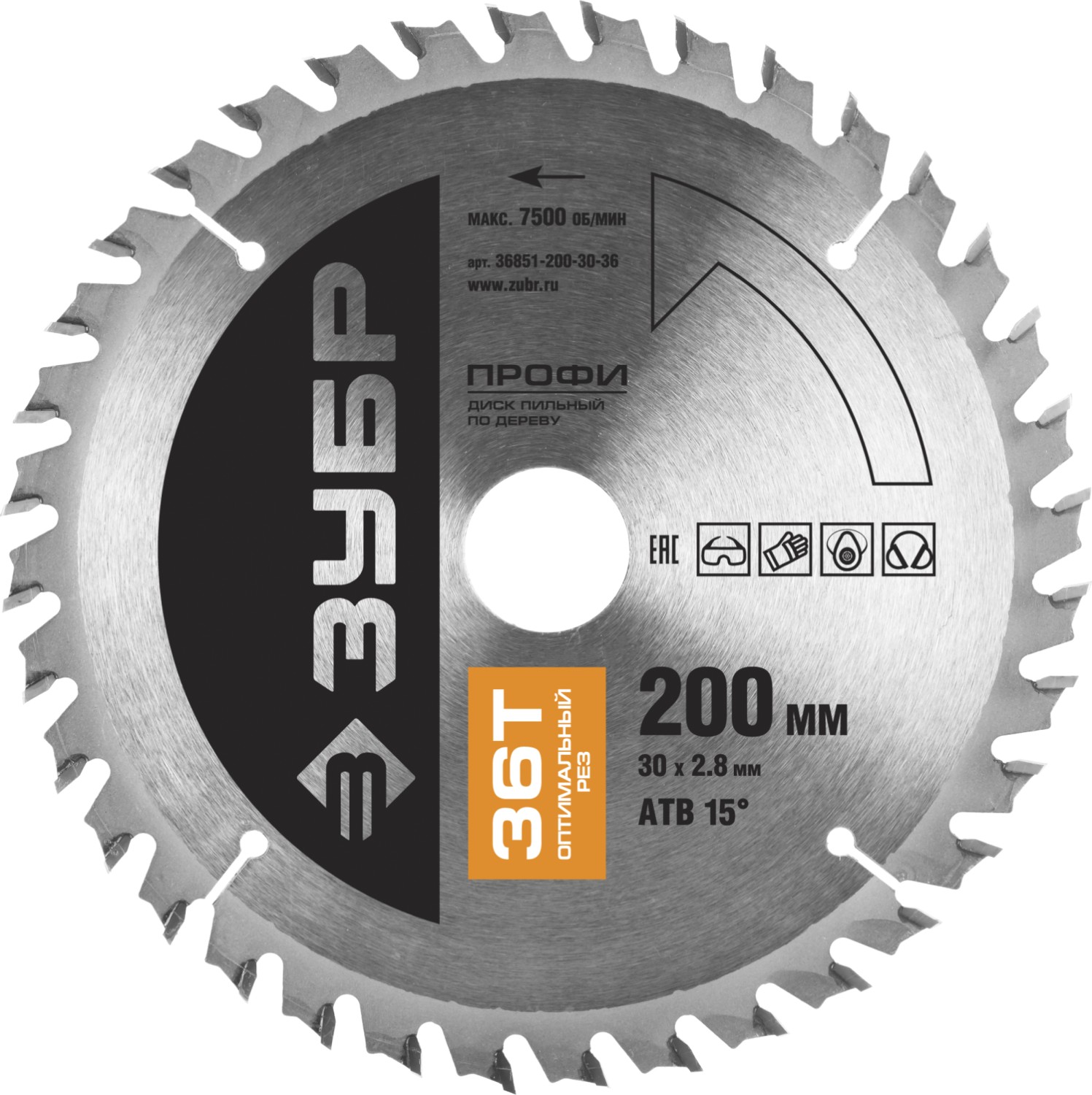 ЗУБР Оптимальный рез, 200 х 30 мм, 36Т, пильный диск по дереву, Профессионал (36851-200-30-36)
