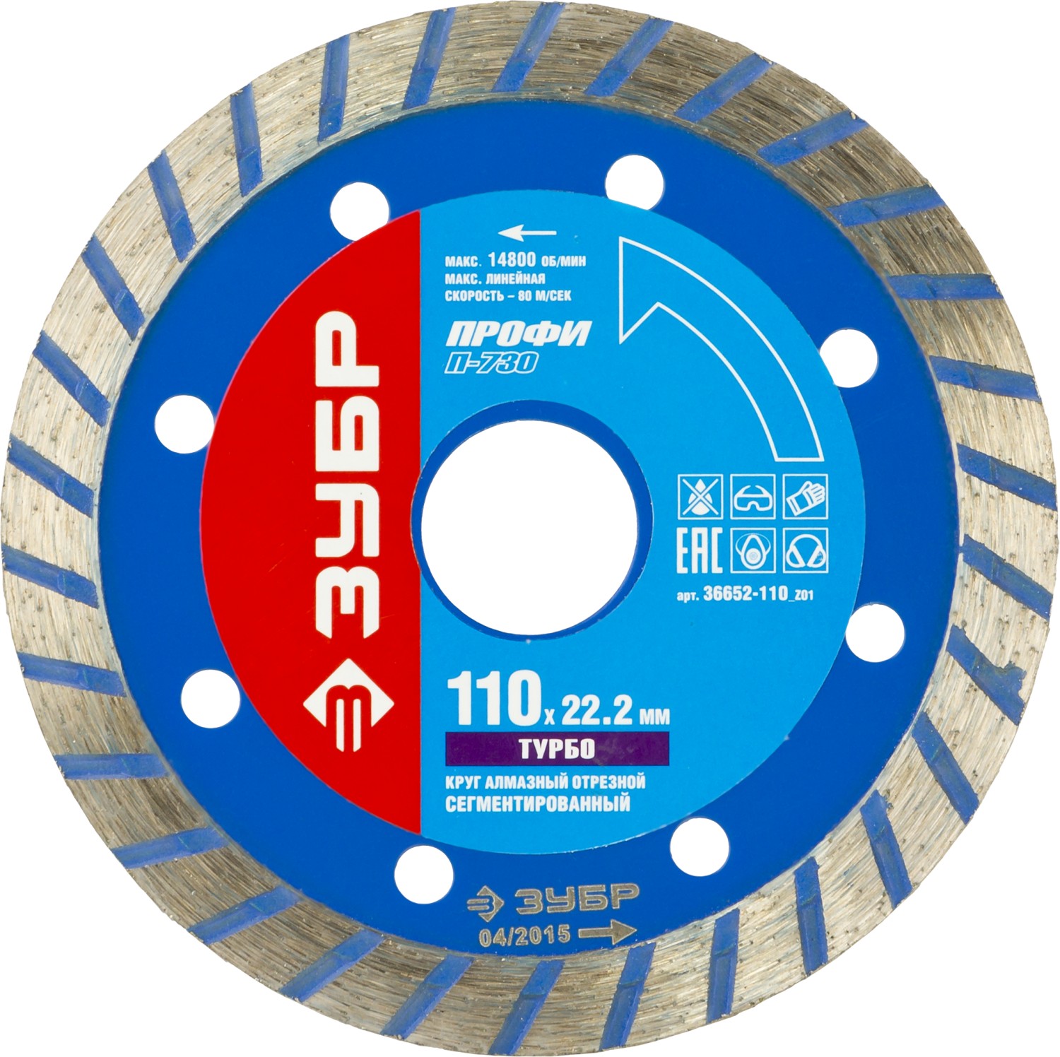 ЗУБР Турборез, 110мм, (22.2 мм, 10 х 2.2 мм), сегментированный алмазный диск, Профессионал (36652-110)