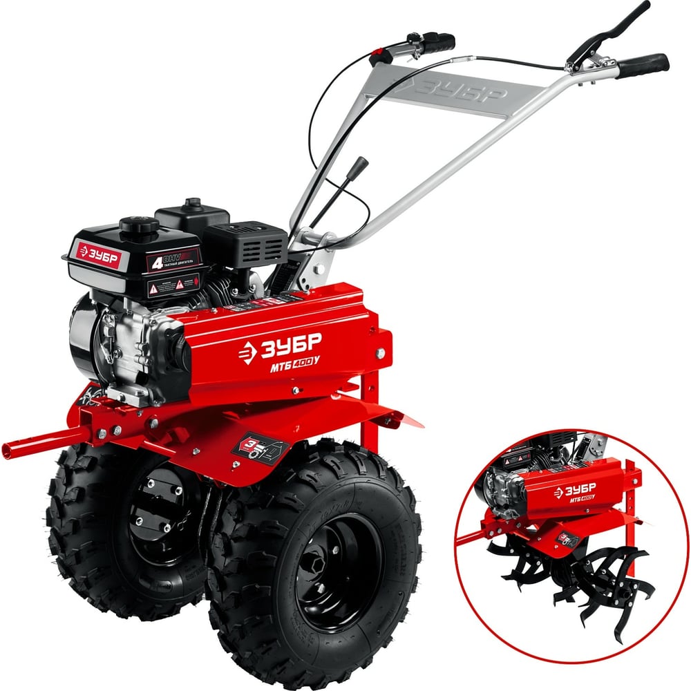 Бензиновый мотоблок с понижающей передачей ЗУБР МТБ-400 У предназначен для рыхления и культивирования, а при использовании дополнительного навесного оборудования спектр применения мотоблока значительно расширится.Модель предлагает отличное сочетание высокой производительности, управляемости и устойчивости.Регулируемый сошник надежно фиксируется к раме культиватора и отвечает за регулировку глубины вспашки.Рукоять мотоблока с возможностью регулировки по вертикали делает управление более комфортным.
